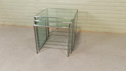 Artedi Italië Vintage 1970's Travertijn Messing Glazen Salontafel