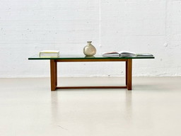 Authentieke, vierkanten jaren 70 salontafel met glazen blad