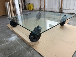Uitschuifbare salontafel in messing en glas van Morex, Italië
