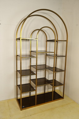 Vintage 50s buffetkast van hout, messing en glas, Italiaans ontwerp
