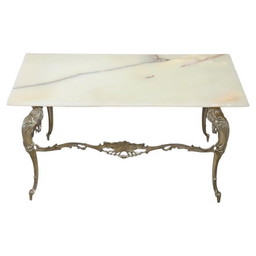 20e Eeuw Antiek Messing en Houten Console Tafel of Voetstuk