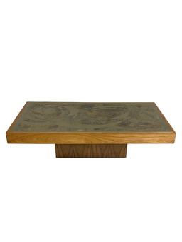 Zeldzame salontafel van Heinz Lilenthal, messing en teakhout, jaren 80.