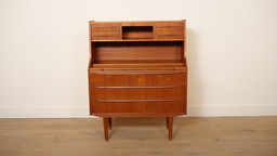 Vintage Deense secretaire van teakhout met 3 laden en uitschuifbaar blad