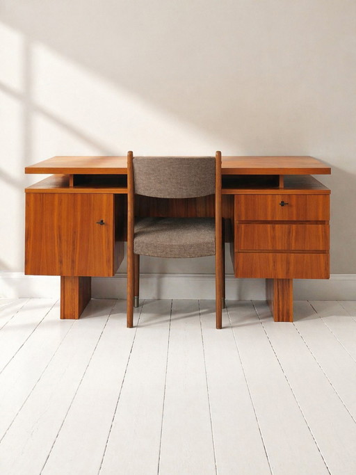 Bureau en bijpassende fauteuil in mid-century stijl van Derk Jan De Vries, jaren 70.
