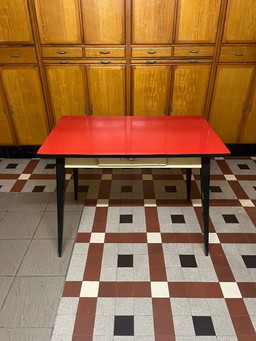 Vintage Deense secretaire van teakhout met 3 laden en uitschuifbaar blad