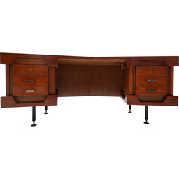 Vintage massief eikenhouten bureau van Louis Paolozzi voor Guermonprez, jaren 1950