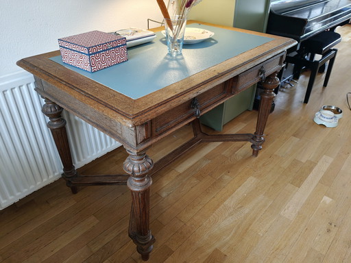 Antieke Noten Houten Schrijftafel, Bureau, Buro