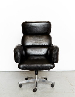 Eurosit bureaustoel, zwart leer, metalen onderstel