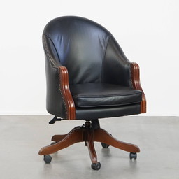 Klassieke en luxe zwarte rundleren bureaustoel in Engelse stijl