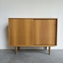 Schuifdeurkast dressoir eiken Deens vintage