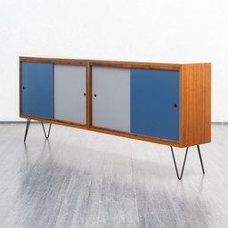 Jaren 60 Dressoirs, teakhout, gekleurde omkeerbare deuren, 185 cm