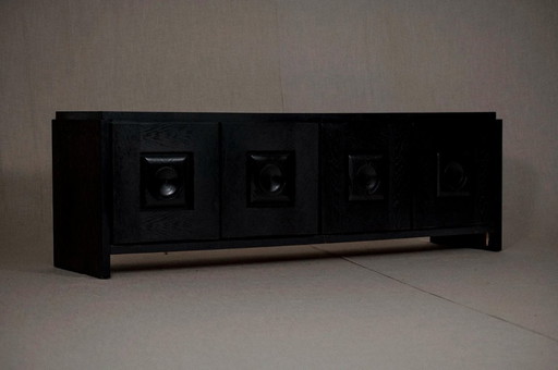 Laag brutalistisch dressoir in zwart eiken