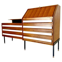 Vintage dressoir uit de jaren 50 van hout en verguld messing, Italiaans design