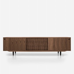 Dressoir van notenhout, ontworpen door Silvio Coppola voor Bernini in de jaren 60, een voorbeeld van Italiaans vakmanschap.