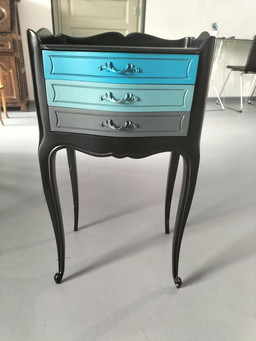 Gerestaureerd Art Deco nachtkastje – handgemaakte eikenhouten meubelen en krijtverf met gouden details