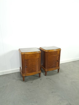 Art Deco Noten Fineer Nachtkastjes Met Lade