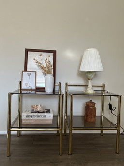Hollywood Regency Nachtkastje Glas Goud Chroom