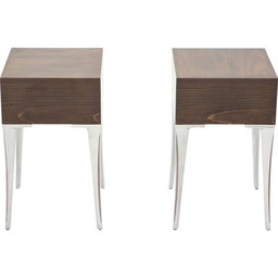 Paar vintage metalen en houten nachtkastjes van Pierre Gariche voor Steiner