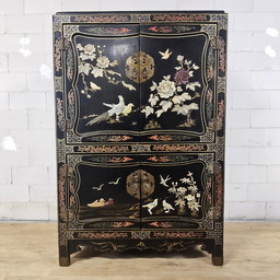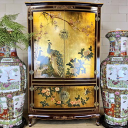 Vintage Chinese kast vogels, bloemen bladgoud bohemian kast / oosterse kast / chinese cabinet