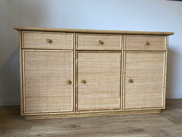 GEMODERNISEERD VINTAGE DRESSOIR VAN BAMBOE EN ROTAN UIT DE JAREN 70