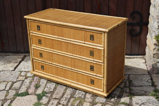 Commode van bamboe en rotan uit de jaren 70, mid-century stijl, van Angraves.