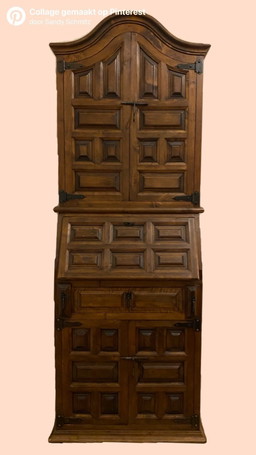 Antieke Spaanse Revival Secretairekast van Massief Hout Antieke Spaanse Revival Secretairekast van Massief Hout