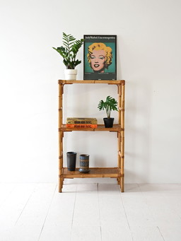 2 Vintage boekenplanken van bamboe en rotan, jaren 60