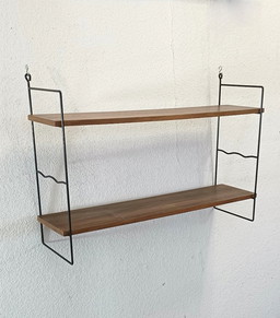 Scandinavische wandplank "hylla" in mahoniehout en metaal uit 1960