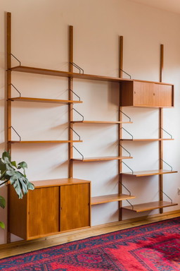 Teakhouten modulaire wandplank van Nils Strinning voor String, 1960