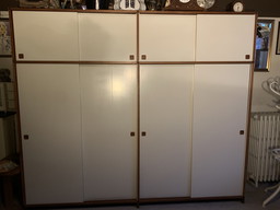 Jaren 60 Dressoirs, teakhout, gekleurde omkeerbare deuren, 185 cm