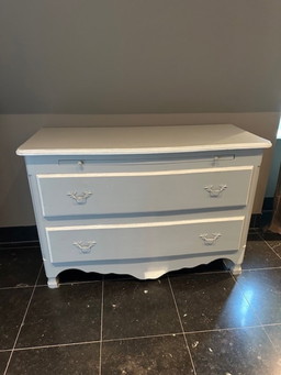 Paar witte Scandinavische nachtkastjes uit de jaren 50