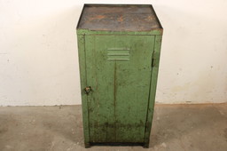 Antieke industriële metalen kast • Groene vintage werkplaatskast met patina • Loft- en fabrieksontwerp