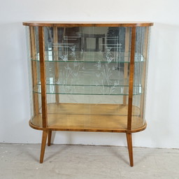 Stijlvolle art-deco vitrine met bloemgravureStijlvolle art-deco vitrine met bloemgravure