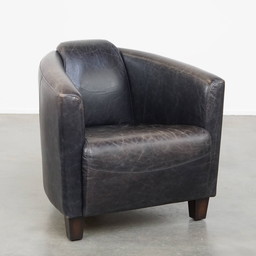 Groene vintage rundleren chesterfield fauteuil