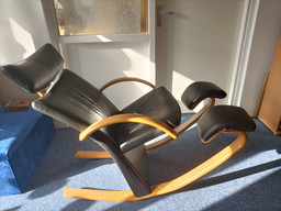 Georg Eknes Noors design lounge draai fauteuil met leder kussens