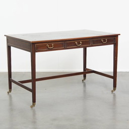 Antiek Frans eind 18e eeuws vierkant bijzettafeltje met een houten frame en een marmeren blad