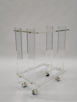 Hollywood Regency Lucite Plexiglas Perspex Messing Barcart Trolley Drankenwagen Theewagen