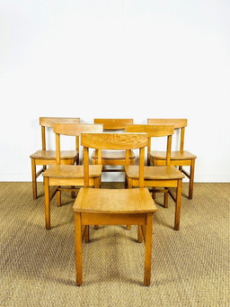 3x gerestaureerde ‘Morten stoelen’, Koefoeds Hornslet ‘70