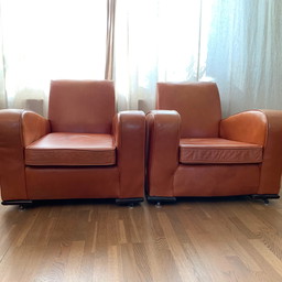 2x unieke retro leren rookstoelen