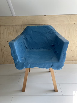iconische Miroslav Navratil stoel blauw pluizige stof voor Český Nábytek 1960