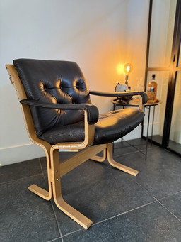 Scandinavische fauteuil en voetenbank door Yngve Ektröm voor Pastoe 1960S