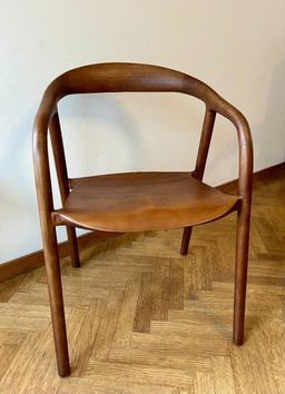 2 x Vintage schapenleren design fauteuil in een donkere cognac kleur