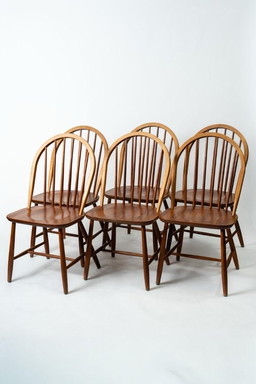 Set van 6 Italiaanse stoelen met spijlenrug van beukenhout, jaren 70.