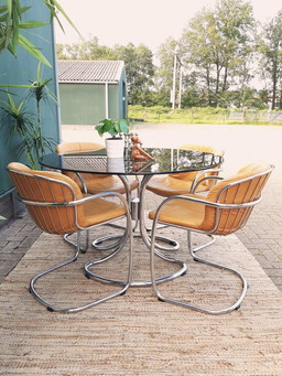 4x Thonet S34 Armstoel by Mart Stam Chroom / Buffelleder / Geolied Walnoot