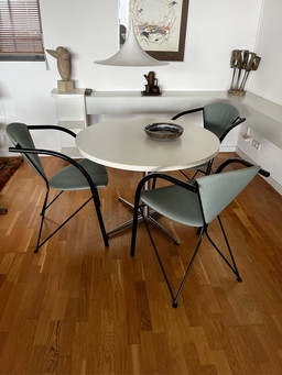 Set groene kunststof chromen buisframe stoelen Helmut Starke Zweden