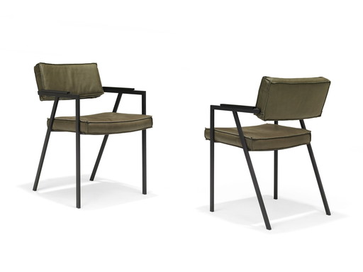2 Vintage buizenframe leraren/bureaustoelen Gispen stijl.
