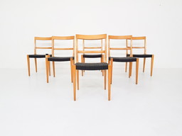 Set van zes teakhouten stoelen, Deens ontwerp, jaren 1970, productie: Denemarken