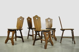 Brutalist pinewood eetkamerstoelen