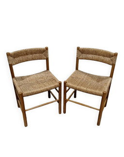 Paar Vintage stoelen met spilrugleuning - 1970 Beukenhout, gerestaureerde rustieke zitting