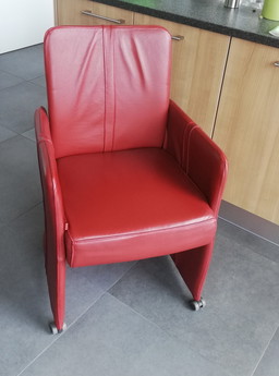 6 KFF leren eetkamerstoelen model Texas 4 zwart 2 rood